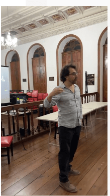 Na oficina, o coordenador do projeto, professor Gustavo Costa, e os pesquisadores Reginaldo Braga Jr. e Carla Magno falaram um pouco sobre a abordagem teórica de políticas públicas que sustenta a pesquisa, apresentaram um protótipo da plataforma digital que está sendo desenvolvida para funcionar como uma ferramenta pública, colaborativa, e contaram como tem sido o trabalho de estudo e mapeamento da rede de iniciativas de inovação social e seus atores de suporte. “Na década de 90, um teórico chamado Frank Fischer propõe uma virada argumentativa das políticas públicas, que é a ideia de pensar as políticas públicas a partir dos agentes sociais situados no território. Então, basicamente, o que ele diz é que o Estado tem especialistas que pensam as políticas públicas de cima para baixo e esses especialistas do governo estão muito afastados dos problemas públicos, o que faz com que nem sempre a interpretação deles seja adequada para resolvê-los. Por outro lado você tem, na sociedade, organizações ou indivíduos que estão lidando com os problemas públicos cotidianamente, pensando soluções para esses problemas públicos e agindo sobre eles”, explicou Gustavo.